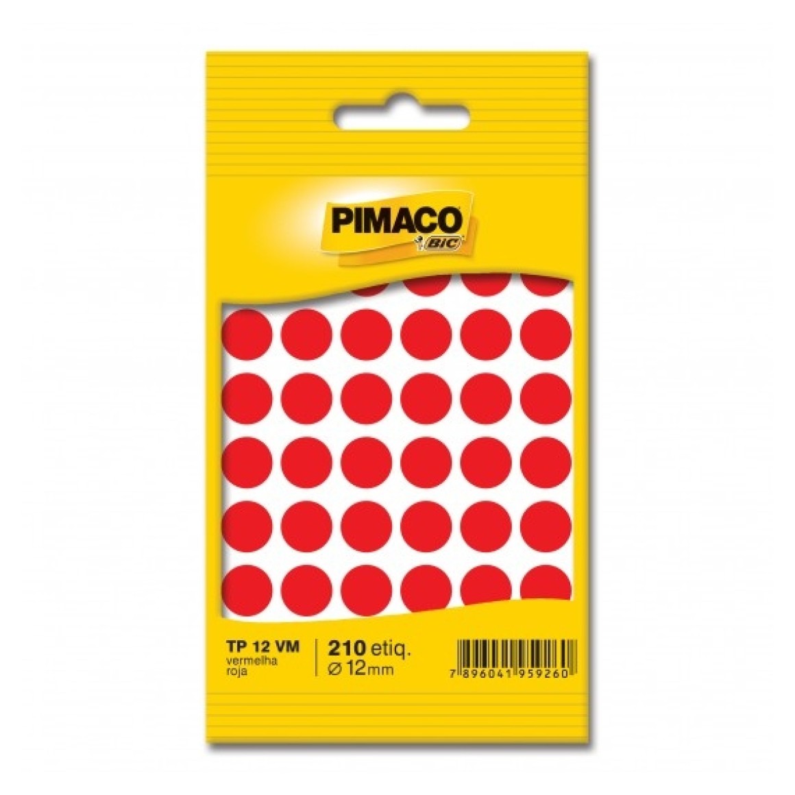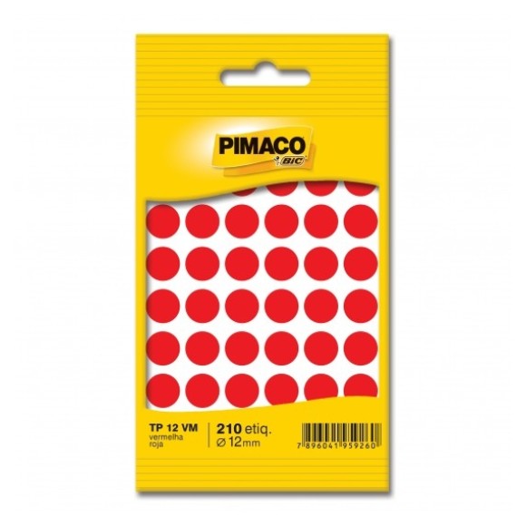 ETIQUETA ADESIVA TP 12 VM 210 UNIDS 12MM VERMELHA PIMACO