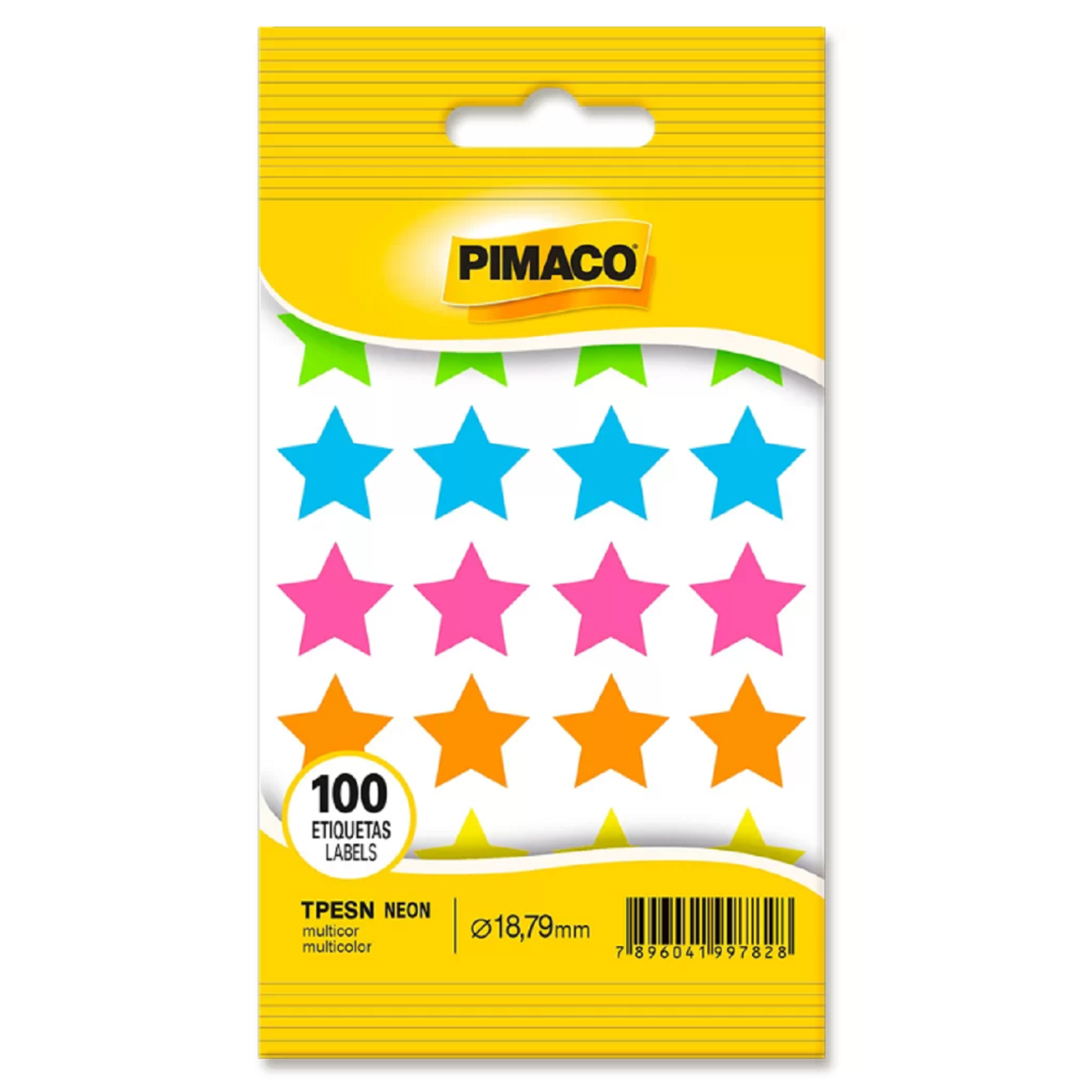2. ETIQUETA LISA COM FORMAS ESTRELA TP-18 NEON C/100 PIMACO