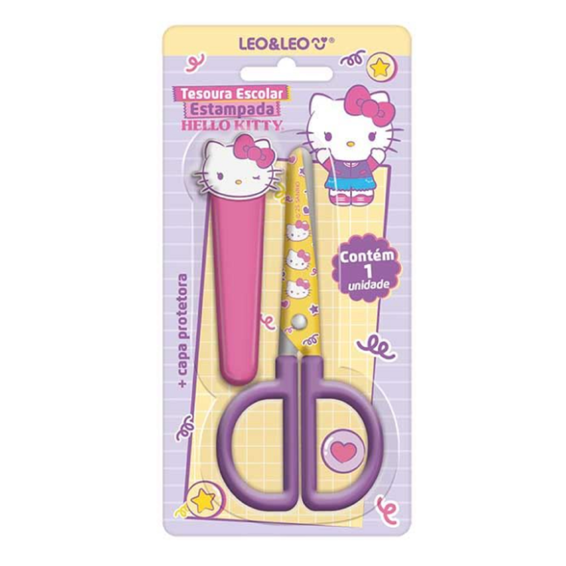 2. TESOURA ESCOLAR ESTAMPADA COM CAPA HELLO KITTY LEO&LEO