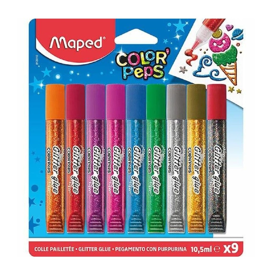 Com o Blister de 9 Cores da Cola Glitter Color’Peps da Maped, seus projetos vão sair do papel e ganhar vida.