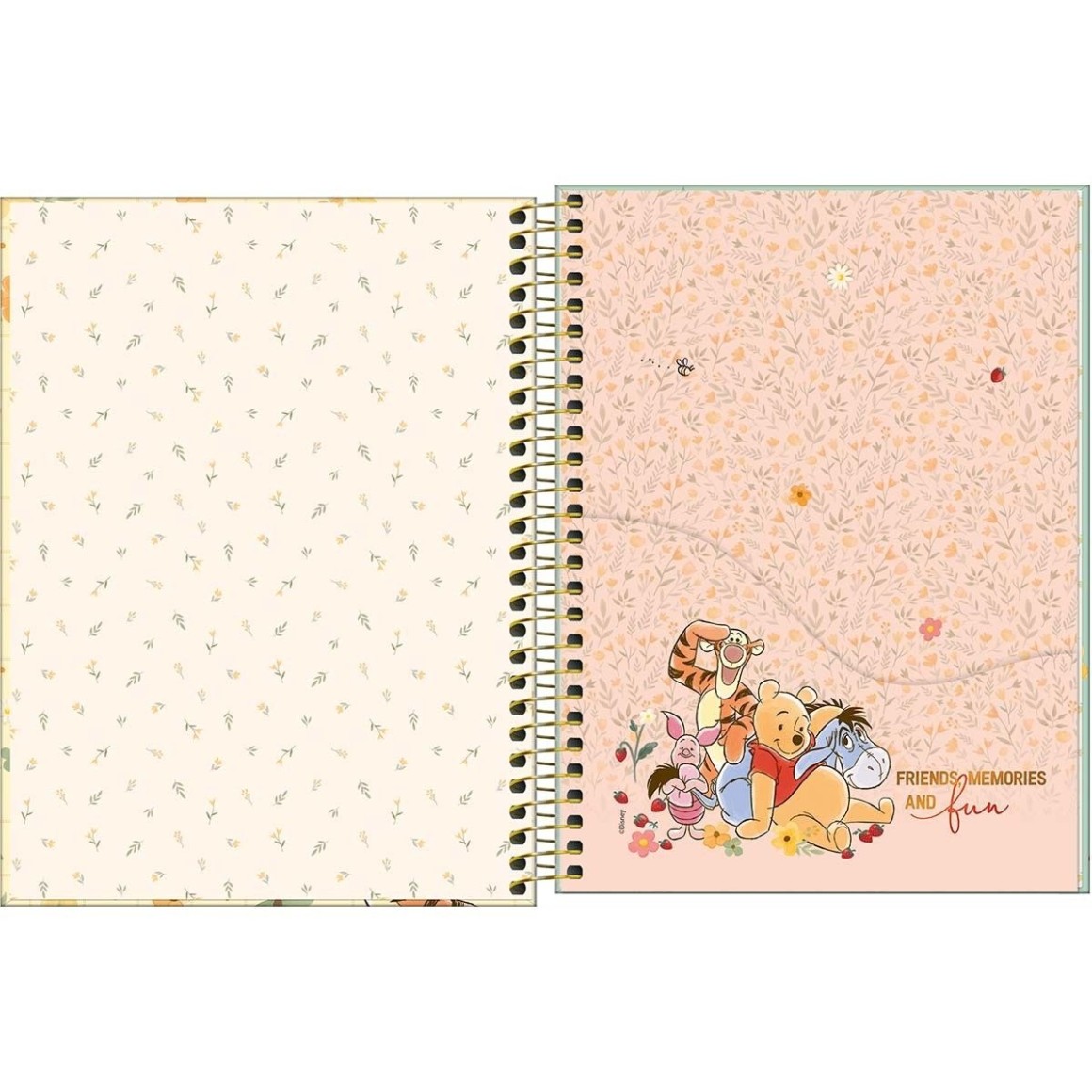 O Caderno Capa Dura Colegial Pooh 10 Matérias 160 Folhas possui formato inovador e compacto, ideal para quem gosta de praticidade. Possui capa dura com a parte interna decorada, bolsa de papel decorada, folha com adesivos funcionais e folhas pautadas decoradas destacáveis.