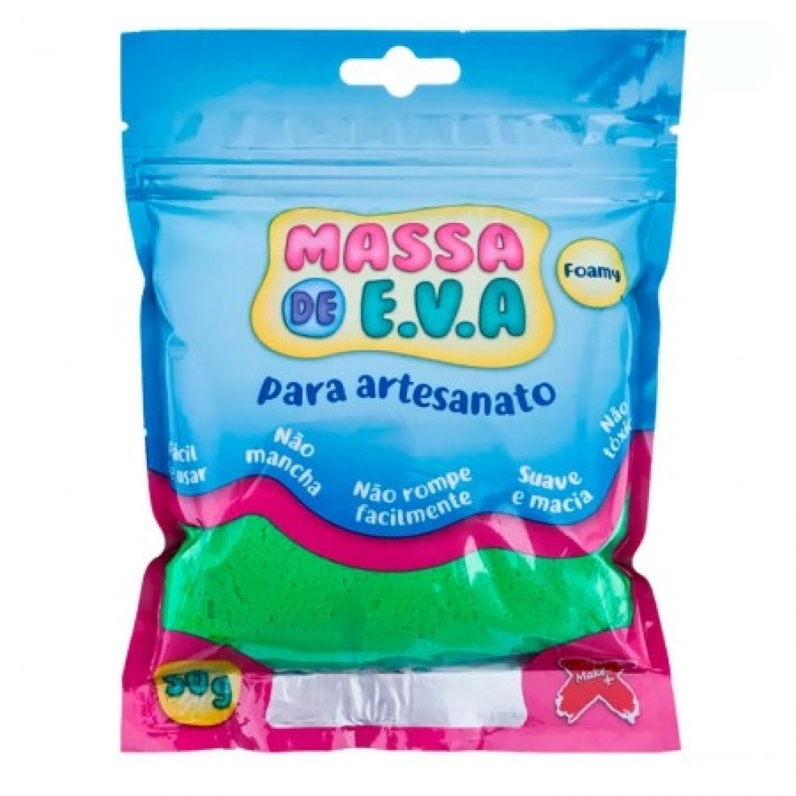 Macia, suave e flexível, a Massa de E.V.A. Make + é muito fácil de usar, resistente, livre de qualquer composto tóxico e não mancha!