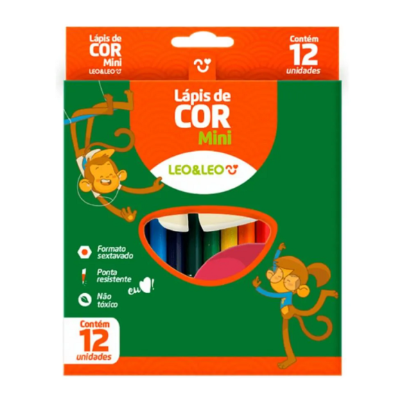 2. LÁPIS DE COR MINI SEXTAVADO 12 CORES LEO&LEO