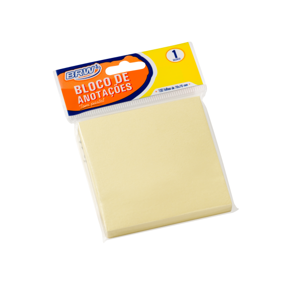 BLOCO DE ANOTACOES 76X76MM 100FLS AMARELO PASTEL BRW