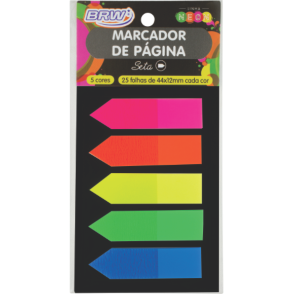MARCADOR DE PAGINA SETA NEON 5 CORES 12X44MM BRW