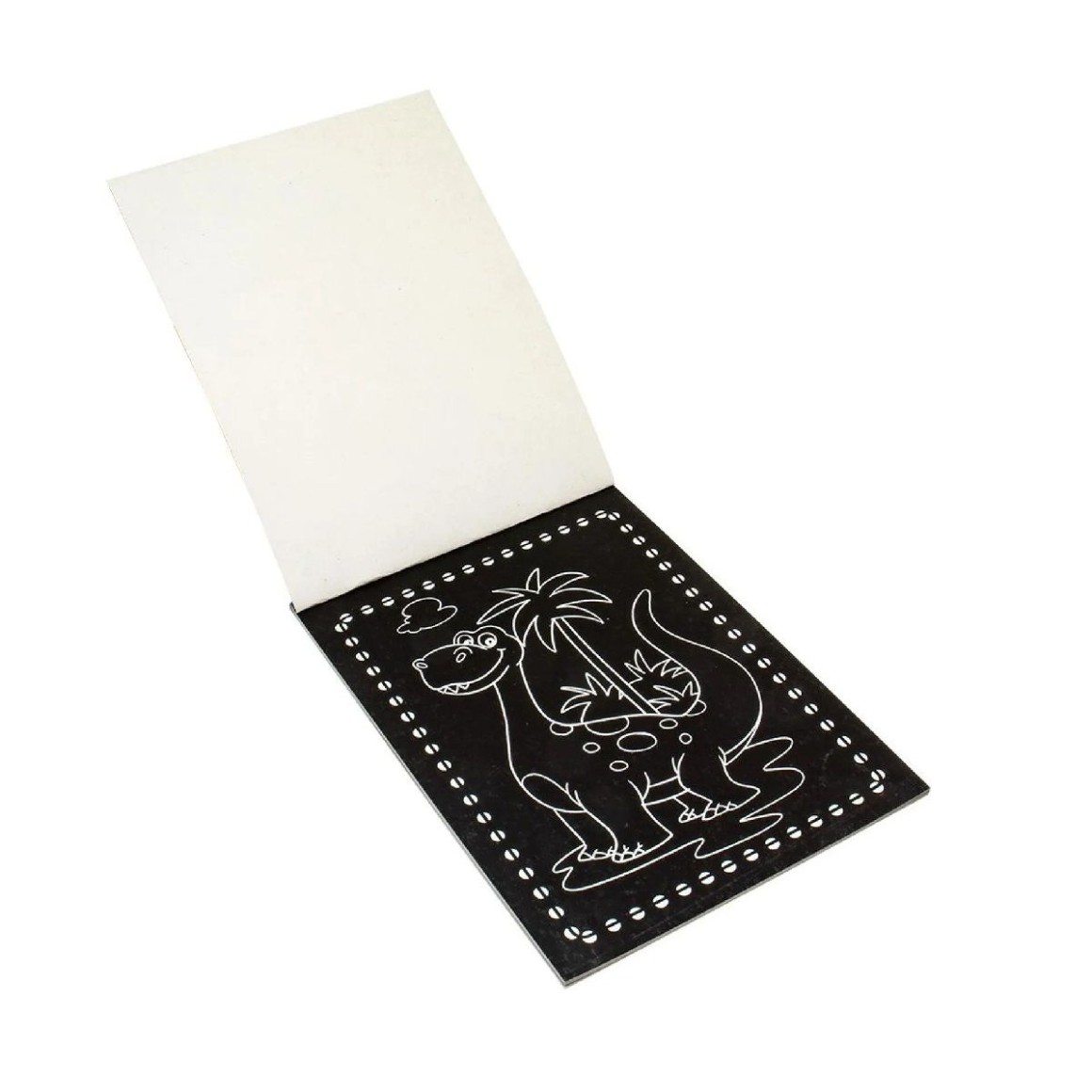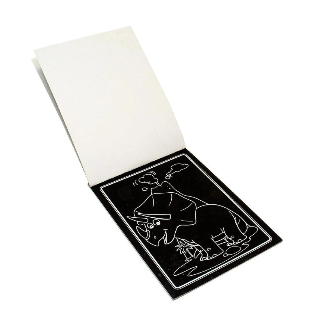 Acabamento Brochura c/hot stamping, páginas de cartão preto (tipo raspadinha). Acompanha um palito plástico. Embalagem com fechamento em adesivo.