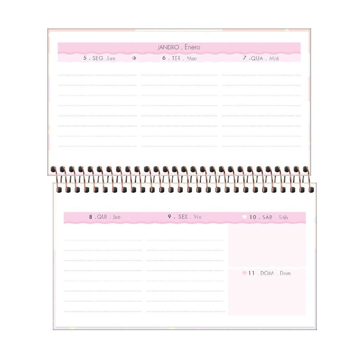 A Agenda Espiral Semanal 16,7 x 8,9 cm Soho é ideal para guardar na bolsa e auxiliar na organização do dia a dia. Este produto, com visão semanal, possui capa dura texturizada com detalhe metalizado e acabamento em espiral rose gold.