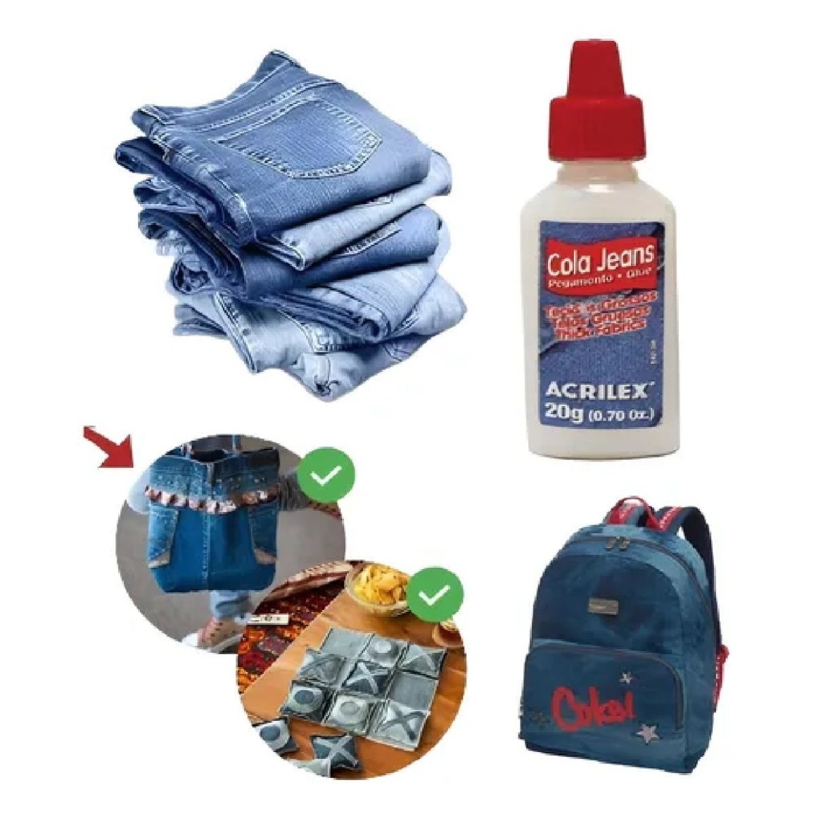 A Cola Jeans da marca Acrilex foi fabricada pensando no uso profissional em determinados trabalhos artesanais. Indicada para colagem de tecido sobre tecido, como jeans e lonas, dando maior aderência. Não é indicado o uso para tecidos finos e de clores claras. Um produto para fabricação de peças patchwork, costura e pequenos reparos. Muito mais praticidade e um ótimo acabamento em seus trabalhos!