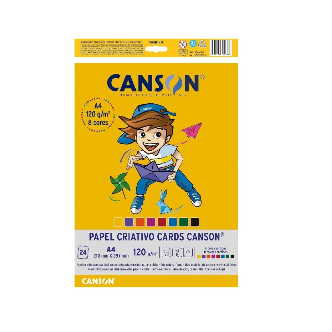 PAPEL CRIATIVO A4 8 CORES 120G 24 FOLHAS CANSON
