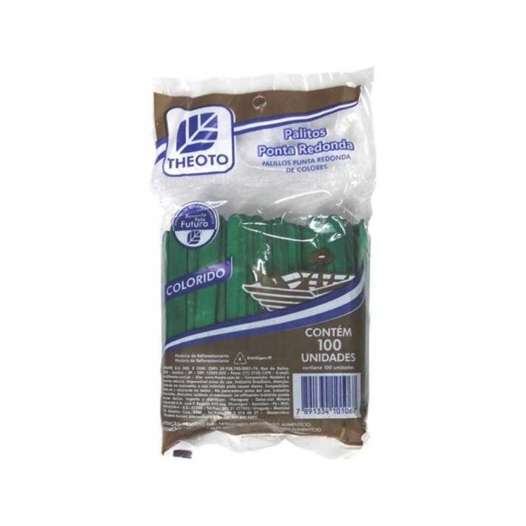 PALITO DE SORVETE PONTA REDONDA ESCOLAR 100 UNIDS VERDE THEOTO