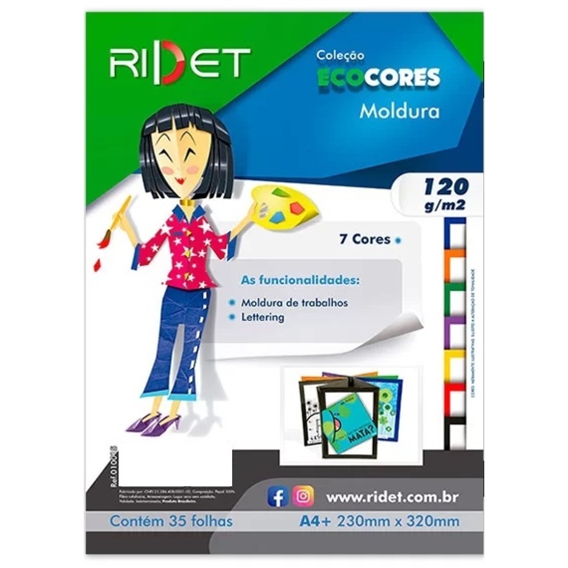 BLOCO ECOCORES MOLDURA 7 CORES 23X32 120G 35 FLS RIDET